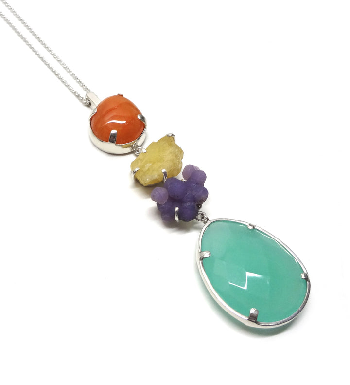 Collar en plata .925 con Cornalina, citrina, amatista uva y Calcedonia. (largo del dije: 10cm aprox.) Largo de cadena de 44-56cm con aumento.