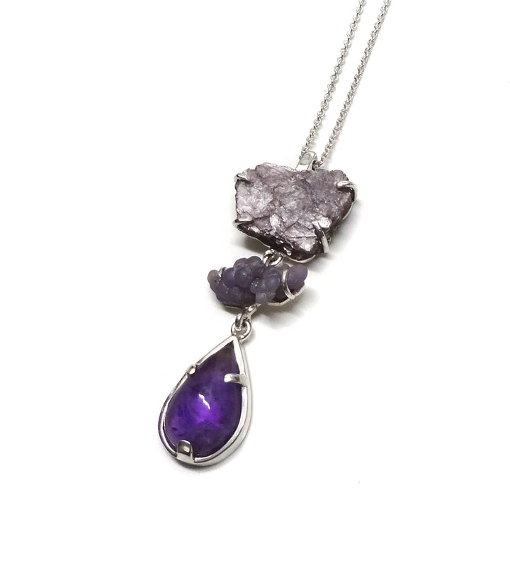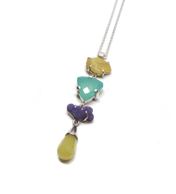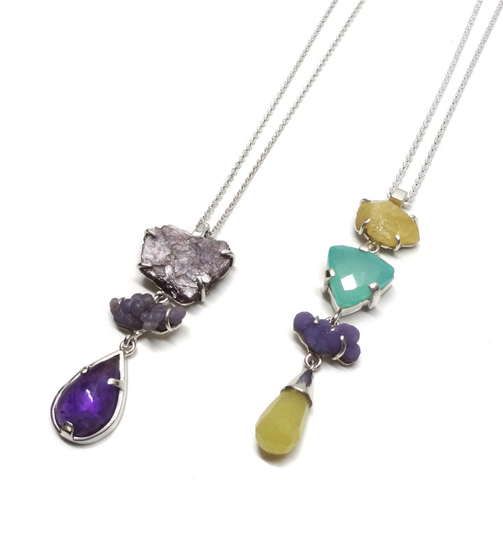 Collar en plata .925 Collar Morado: Lapidolita, amatista uva y amatista. Collar de colores; Citrina, calcedonia, amatista uva y calcedonia amarilla . Largo de cadena de 40-45cm con aumento.