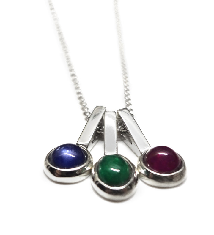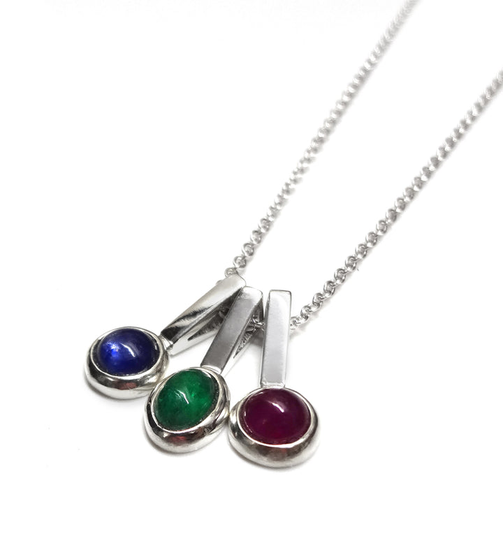Collar en Plata 925 con Esmeralda, Zafiro y Rubí.  Largo de cadena de 40-45cm con aumento.